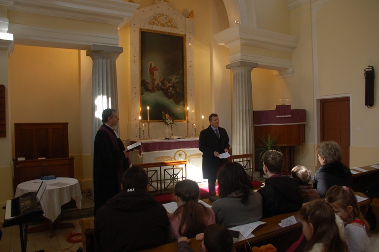 Tisztújítás az evangélikus egyházközségben Hat évenkénti országos tisztújítás részeként a gyulai evangélikusok március 4-n Reminescere, Böjt 2. vasárnapján iktatták a megválasztott vezetőséget. A gyülekezetet új világi vezető, Liska András régész fogja Jakab Béla lelkésszel együtt közösen írányítani vezetni. A presbitérium létszáma öt fővel csökkent kilenc főre, ezzel a csökkentéssel a grémium munkájának hatékonyságot irányozza elő az egyház. A presbitériumot három új tag fogja segíteni: Dr. Dávidné Marsi Gyöngyi, Gahler Erika és Sáfár Gyula. Jakab Béla lelkész igehirdetésében a személyválogatás nélküli szeretet továbbadását hangsúlyozta, valamint azt, hogy bár ő is részt vett a választási eljárásban és munkatársakat keresett, mégsem a személyes szimpátia volt a fontos a jelölésnél, hanem a gyülekezetért végzett áldozatos munka. A beiktatott új vezetőség egy Bibliát és egy presbiterek számára íródott könyvet kaptak ajándékba. A leköszönő vezetőség egy oklevelet és egy imádságos könyvet kapott köszönetképpen. Az ünnepi közgyűlés egy bejelentéssel kezdődött: megalakult a Stéberl-Benkő Zsuzsanna Evangélikus Nőszövetség, amely feladataként tűzte többek között célul az idős, beteg gyülekezeti tagok segítségnyújtása mellett az evangélikus gyermekes családok gyülekezetbe integrálását is. A nőszövetség vezetésére a lelkész Kertész Márta-t kérte fel, a felügyelő feleségét, aki így férjével együtt közösen tud majd a gyülekezetért munkálkodni. Az iktatáson részt vettek városunk egyházainak világi képviselői: Dr. Kovács József katolikus, Markó István református, Tímár Csaba baptista gyülekezetek köszöntését és áldáskívánást tolmácsolták. Az ünnepi közgyűlést városunk polgármestere Görgényi Ernő köszöntő szavai zárták, amelyben méltatta a gyülekezet múltját, áldozatkészségét és a közösségért folytatott jelenlegi munkáját.